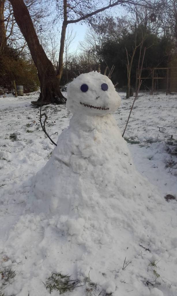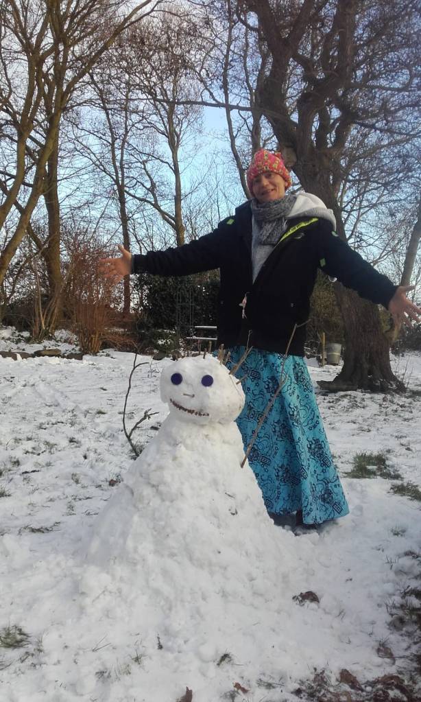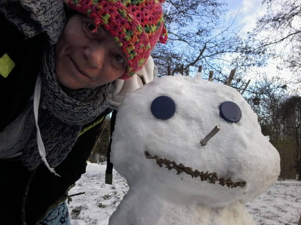 Ik heb maar één advies: ga naar buiten!!! Ik begrijp dat ik in het voordeel ben omdat ik tot de eerste sneeuwstorm buiten heb geslapen en dus goed ben afgehard, maar echt: GA NAAR BUITEN!!! Het is net als met zwemmen, eerst lijkt het koud en onaangenaam maar als je eenmaal door bent, is het heerlijk. Als je een kwartier, twintig minuten buiten bent, ben je “door” en heb je het niet koud meer. En dan nog! tegen kou kun je je kleden: dikke, waterafstotende jas, trui eronder en eventueel een skibroek en wandelen maar! Als wandelen je verveeld, kun je ook een sneeuwpop bouwen. Dat heb ik gister gedaan. Ik ben er erg trots op. 🙂