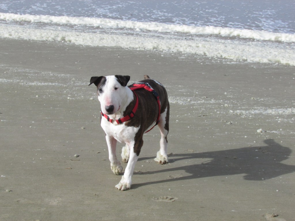 Thuisgekomen heb ik Reinier in bad gedaan. Hij heeft een huidaandoening die heel veel jeuk veroorzaakt en daarom moet hij twee keer per week in bad. Dit keer heb ik hem eerst maar even gespoeld; zijn dunne vacht zat onder het zand! Nu ligt hij lekker warm in een dekentje op de bank te slapen.