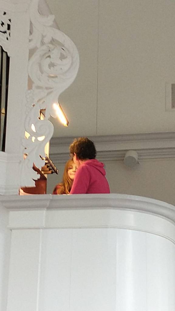 Twee dagen later kwam dan toch de vraag wat is een registrant? Het korte antwoord: een registrant is de assistent van de organist. Hij slaat blaadjes om en doet op de gezette tijden registerknoppen open en dicht. En hij haalt koffie voor de organist natuurlijk! Ook heel belangrijk. C. staat altijd klaar om te helpen en ze kan niet alleen heel goed noten lezen, ook van blad zingen gaat haar moeiteloos af. Zo togen wij op Paasmorgen naar de kerk om muziek te maken AMDG*. Het was leuk. C heeft knoppen uitgetrokken en ingeduwd. 99% van de keren precies op het juiste moment. En keihard meegezongen met alle liederen 😀