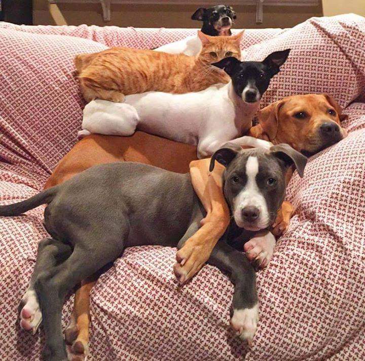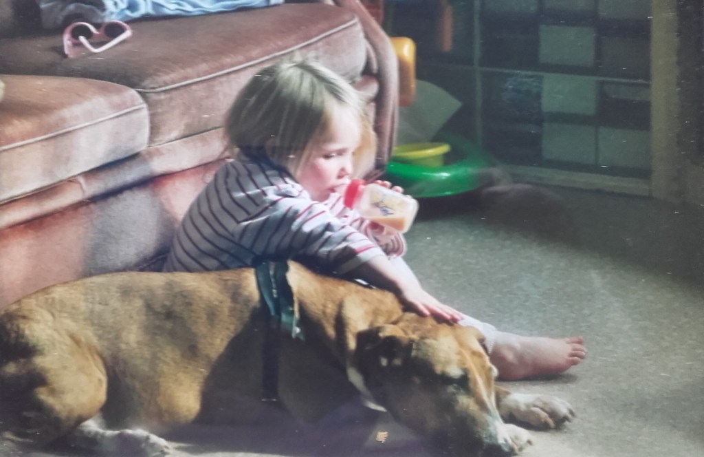 MADELIEFJU EN REINIER: Afgelopen week heb ik twee keer van Madeliefju gedroomd. Madelief was mijn eerste hond. Ze was een pitbullteef die op het strand van Scheveningen woonde en twee jaar lang de mensen van de dierenambulance wist te omzeilen. Hoogstwaarschijnlijk was ze in het illegale circuit gebruikt als fokteef. En, aan haar littekens te zien, ook als bait voordat ze wist te ontsnappen. Ik haalde haar uit het asiel en sindsdien waren we onafscheidelijk. Ik zeg wel dat ik haar uit het asiel haalde, maar eigenlijk ging het andersom. Ze zat met een andere teef in een hok en met die andere teef wilde ik gaan wandelen. Zodra ik het hok open deed, sprong Madelief met vier poten tegelijk in mijn armen. Twee weken later nam ik haar mee naar huis en toen is ze bij me gebleven totdat ze écht niet meer kon en op een zomerdag heel rustig is ingeslapen. Ik heb nooit eerder en nooit meer daarna zo een slimme en handige hond ontmoet! Maar dit allemaal even terzijde: ik droomde over Madelief. In de eerste droom rende ze door de tuin van het tweede huis waar we samen woonde. Daar hadden we een flink stuk grond en Madelief mocht graag ’s morgens voor het ontbijt een paar rondjes rennen. Zo ze ook deed in mijn droom. In de droom de nacht daarna, zat ze aan de andere kant van de Regenboogbrug op Reinier te wachten. Reinier lijkt in karakter en ook in lichaamsbouw heel erg op Madelief, dus ik heb vanaf dag 1 dat ik Reinier uit (een ander) asiel heb gehaald die vergelijking getrokken. Reinier woont inmiddels 11 jaar bij ons en is dus minstens 11,5 en dat is echt oud voor een hond van 35 kilo. Ik weet rationeel dat hij niet zo lang meer bij ons zal blijven en middels dromen bereid ik me blijkbaar emotioneel ook voor op een afscheid. Of Madelief kwam me geruststellen dat zij op Reinier zal passen als ik het niet meer doen kan. Dat mag je ook geloven. Ik geloof dat.