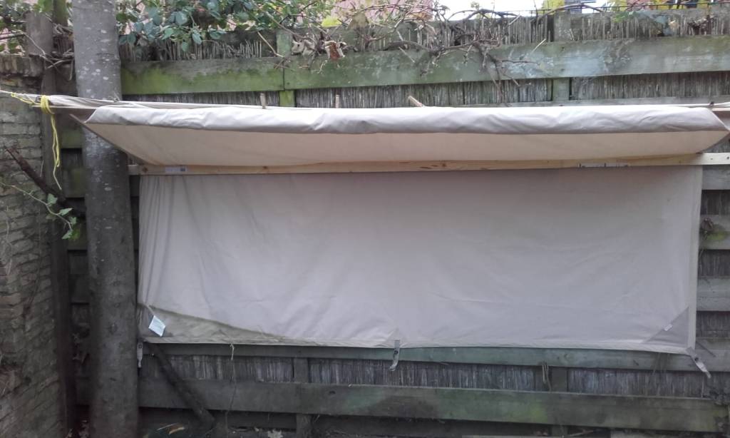 Na het planten van bomen en rozen en het plaatsen van het beeld, was de hangmat aan de beurt. Henk heeft een paal geplaatst en hier en daar wat gaten geboord en nu heb ik een prachtige plaats om te slapen. Onze binnenplaats verdient nu echt de naam binnenplaats. (Hoewel er nog een stapeltje basaltkeien ligt die nog naar mijn zus moeten. Maar het waren er teveel om in één keer te vervoeren, dus het stapeltje wordt steeds een stukje kleiner.) Het enige wat nu nog moet gebeuren is het plakken van het dak met bitumineuze dakbedekking…..ik hoop dat het nog gebeurd vóór de winter echt inzet…