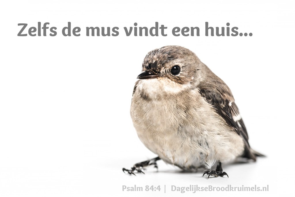 De zwaluw een nest, waar ze haar jongen kan leggen: Bij uw altaren, Jahweh der heirscharen, Mijn Koning en God. Gelukkig, die in uw huis mogen wonen, En eeuwig U loven! Gelukkig de mensen, die hun kracht in U vinden, Als ze met blijdschap ter bedevaart gaan! Het dorre dal wordt hun een bron, En de lenteregen bedekt het met vijvers; Zo gaan ze steeds krachtiger voort, Totdat ze voor God op de Sion verschijnen. Jahweh der heirscharen, hoor mijn gebed; Jakobs God, ach, luister toch! -Waarachtig, één dag in uw voorhoven Is beter dan duizend daarbuiten; Liever wil ik op de drempel van Gods huis blijven staan, Dan wonen in de tenten der bozen. Want Jahweh is een zon en een schild; God geeft genade en glorie. Nooit weigert Jahweh een weldaad aan hen, Die onberispelijk leven. Jahweh der heirscharen: Gelukkig de mens, die op U blijft vertrouwen!