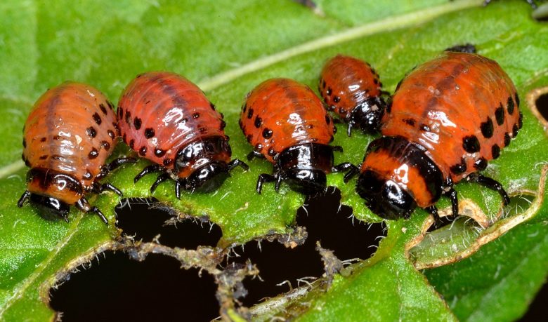 Dit seizoen is niet de fytoftora, maar de Coloradokever het grootste gevaar voor de aardappelplanten. Lees meer over deze exoot hier: https://nl.wikipedia.org/wiki/Coloradokever Het enige voordeel van deze kever is dat hij enkel en alleen de aardappels aantast. Veel van onze buurtuinders zijn al met de gifspuit in de weer geweest. Wij hebben niet één kever gevonden, maar toen ik gister aardappels ging rooien, vond ik toch een paar larven van de Coloradokever. Hoe verschrikkelijk ik het ook vind, deze larven worden doodgemaakt. Dat is de eerlijkste en zekerste manier om de Coloradokever terug te dringen. De enige manier om echt van de Coloradokever af te komen, is geen aardappels telen: