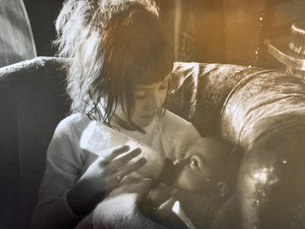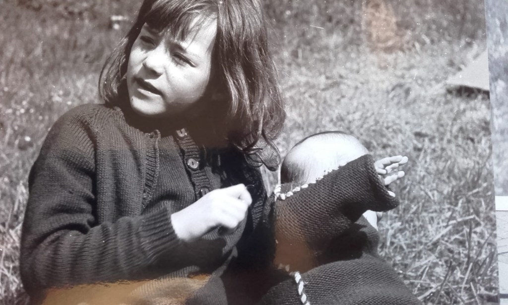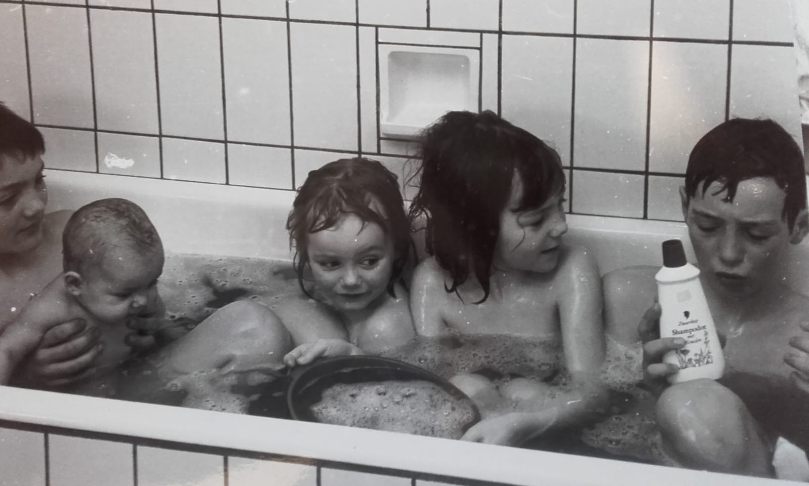 van links naar rechts: zus, zus, broer, ik, tante. Ik had net geleerd mijn armen over elkaar te doen. Ik kan het nog niet zo goed 🙂mijn zus en ik